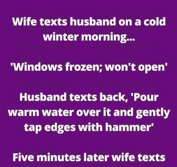 Wife texts husband on a cold winter morning…