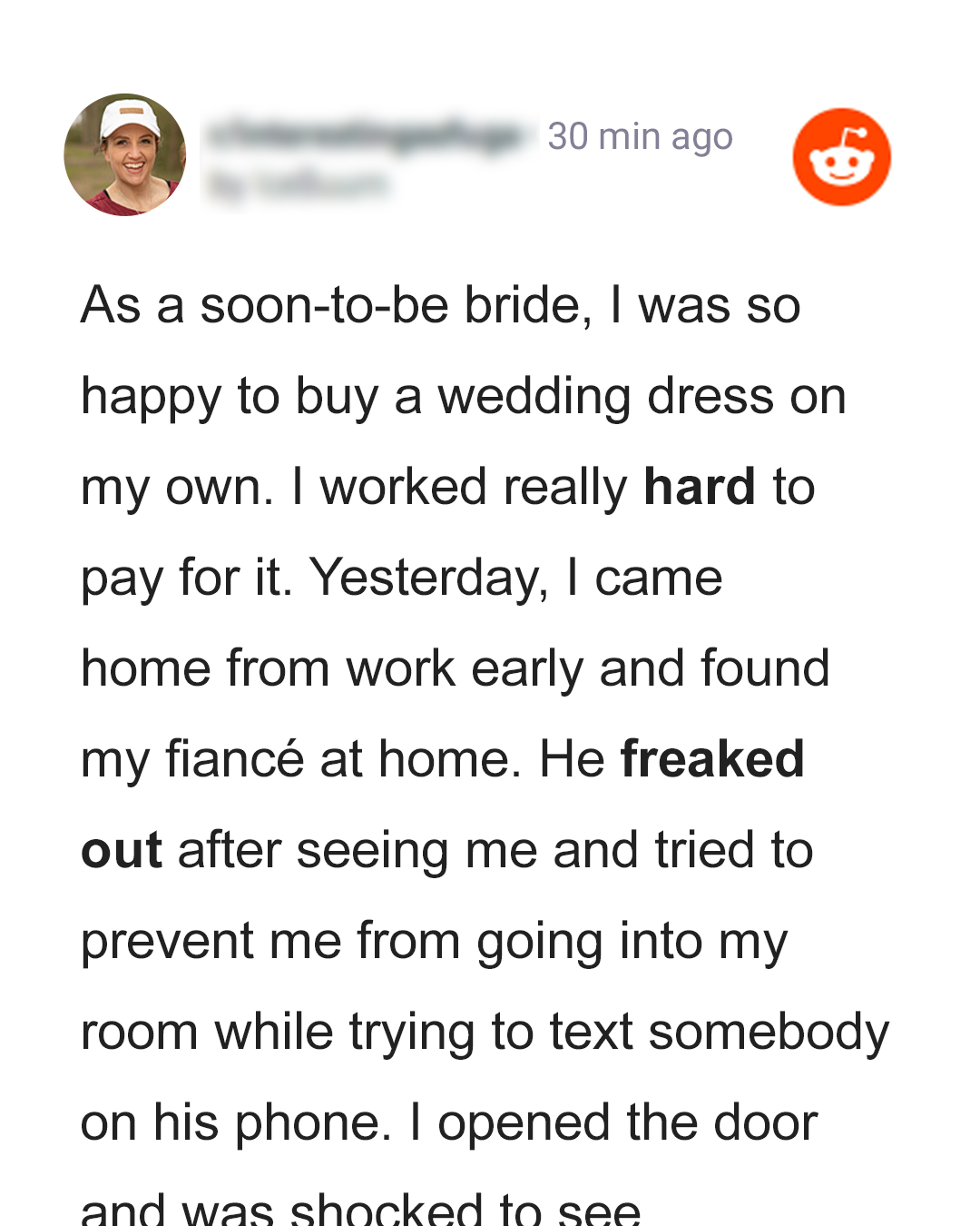 A woman with the username “Repulsive_Scheme1359” posted a query on Reddit after she experienced something unusual at home. Before asking other people if she had done the right thing, she said she was preparing for her wedding with her fiancé.The bride-to-be bought her wedding dress a few weeks before writing the post. Like other women, she wanted to look beautiful on her big day, so she spent $3,000 on the dress, unaware she wouldn’t be the first to wear it.Soon after the woman bought her dress, her fiancé’s mother said she wanted to try it on because she really liked wedding dresses. When the woman refused, her future mother-in-law kept “pestering” her about it and even offered to pay $100 to try on the dress.One day, the woman returned home from work and was surprised to see her fiancé at her place. “He freaked out after seeing me and tried to prevent me from going into my room while trying to text somebody on his phone,” the woman recalled.Feeling suspicious of his actions, she entered her bedroom and saw her soon-to-be mother-in-law standing inside. What shocked the woman was that his fiancé’s mother was wearing her brand new wedding dress!How Did the Bride-to-Be React?”I instantly pulled out my phone and took a photo of her,” the Redditor recalled. She was shocked at her future mother-in-law’s audacity and threatened to show the photo to everyone in the family if she didn’t pay her for a new dress.The Redditor gave the woman three days to pay for a new wedding dress, but her fiancé thought she was overreacting. At that point, the mother-in-law left the room in tears while her son began shouting at his fiancée, saying his mother didn’t cause any harm and just wanted to try on the dress. The Redditor said:”But I refused to listen to him because, in my opinion, the dress should only be worn by the bride and the bride only.”The woman added that she felt “disgusted” looking at her wedding dress and didn’t want to wear it anymore. Meanwhile, her fiancé thought she was treating his mother like an enemy, and the situation turned into a bitter argument between the couple.The woman was offended because she had “worked hard” to buy the dress, and her fiancé’s mother didn’t think twice before wearing it. However, when the woman told her family about it, they felt she overreacted and feared the conflict might ruin her relationship with her fiancé and his mother.What Solution Did Her Fiancé Offer?Soon, the woman’s fiancé called her to propose a solution to the problem. Besides offering to pay for the dress, he asked the woman to apologize to his mother. Moreover, he wanted her to give her phone to him so he could delete his mother’s picture.The woman shared that he also asked her to “swear” that she didn’t have more copies of the photo that she could show to her family members. She added:”He asked that I quit his family group chat and log out of Facebook for at least a month.”The woman said she wasn’t sure about agreeing to her fiancé’s conditions mainly because she didn’t want him to pay for the dress. She wanted his mother to pay because she was the one who wore it.Do you think the woman did the right thing? Should she agree to her fiancé’s conditions and resolve the conflict? Or should she ask his mother to pay for the dress? Leave your thoughts in the comments section.