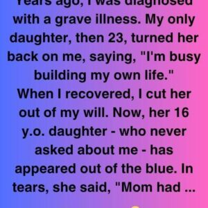 Years ago, I was diagnosed with a serious sickness. My 23-year-old only daughter pulled away, stating, “I’m busy building my own life.” When I recovered, I removed…