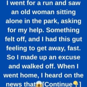 I went for a run and saw an old woman sitting alone in the park, asking for my help.She looked frail, dressed in a long coat despite…