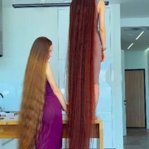With 90-inches of flowing brown locks, this real life Rapunzel has hair brushing the ground behind her.