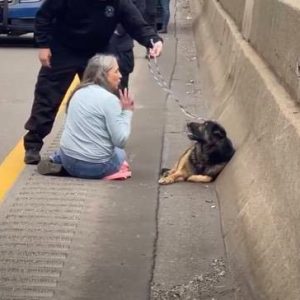 Courageous Roadside Rescue: Woman Helps Wounded German Shepherd on Busy Highway