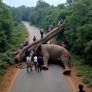 In a heart-stirring incident captured on video, a majestic elephant found itself in distress when a large tree unexpectedly toppled over it.The scene quickly drew the attention…